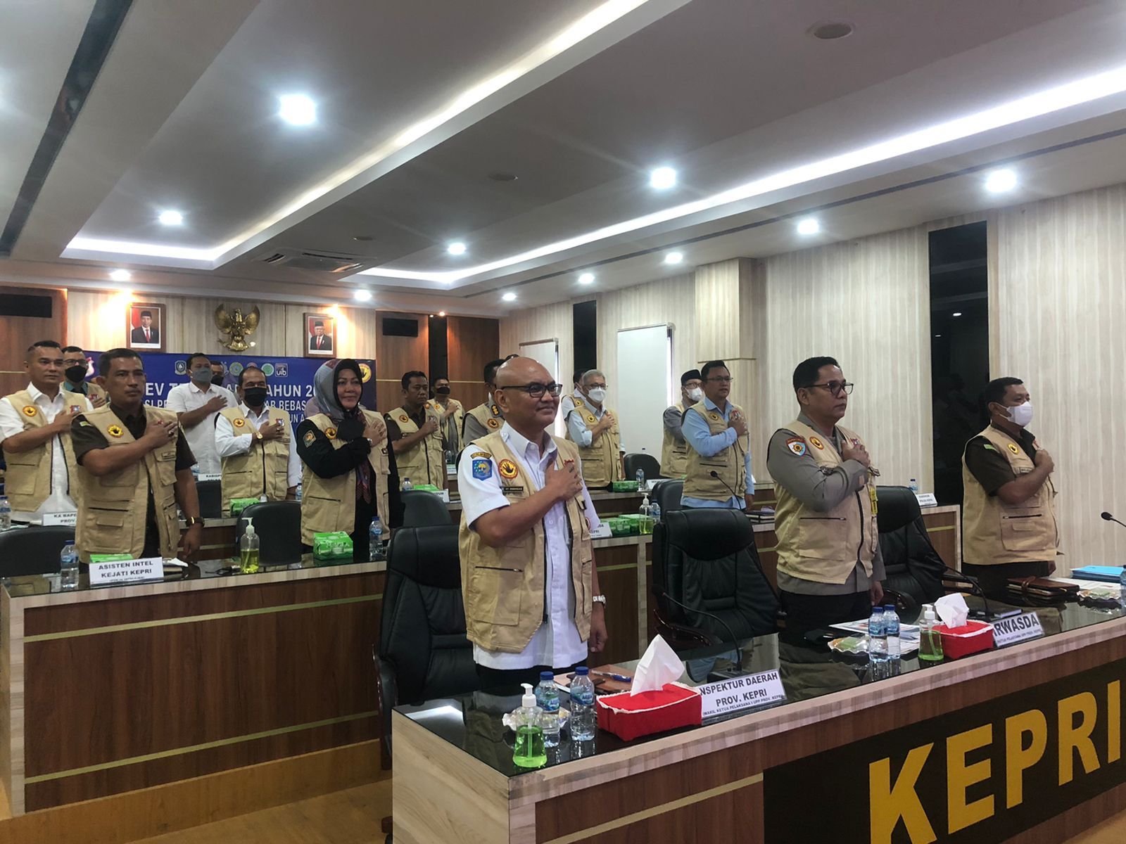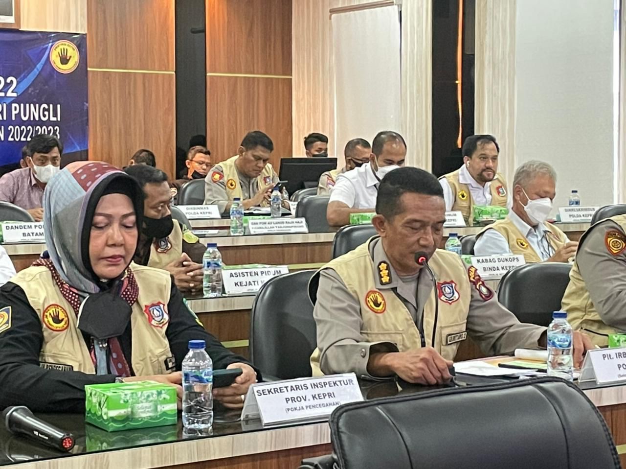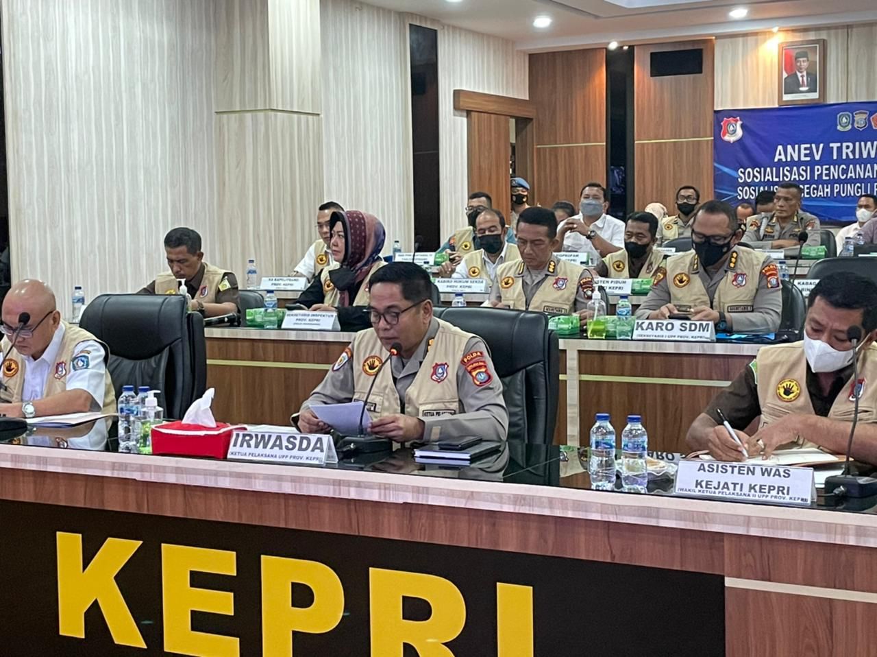 Rabu, 18 Mei 2022, Unit Pemberantasan Pungli Prov. Kepri melaksanakan Rakor Inkait dalam rangka Anev TW.I Tahun 2022, yang dipimpin oleh Irwasda Polda Kepri selaku Ketua Pelaksana UPP Provinsi Kepri Kombes Pol M. Rudy Syafiruddin, S.IK, S.H yang didampingi oleh Inspektur Provinsi Kepri selaku Wakil Ketua I Bapak ST. Irmendas SE, AK dan Asisten Pengawasan Kejati Kepri selaku Wakil Ketua II yang diwakilkan oleh Bapak Baginda, SH. Kegiatan ini dihadiri dari berbagai Inkait yaitu dari unsur Kepolisian, Pemda, Kejaksaan, Ombudsman, POM TNI, MUI dan Akademisi. Kombes Pol M. Rudy Syafiruddin, S.IK, S.H menyampaikan kegiatan ini sebagai bentuk untuk :